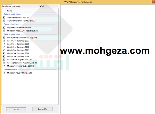 هل فكرت يوما بعد تنزيل نسخة الويندوز ماذا عليك ان تفعل لكى تعمل معك النسخة بكامل امتيازتها وما هى البرامج المكملة لها وهل حاولت تشغيل العديد من الالعاب وكانت تزعجج رسائل الخطاء من الويندوز اذا كنت تبحث عن حل حقيقى فاليك برنامج aio الافضل فى مجال اضافة البرامج المهمة والرئيسية لنسخة الويندوز لديك فيقوم بتنزيل مجموعة برامج متعددة منها الفلاش بلاير والجافا والنت فرام والعديد من البرامج التى يحتاج اليها جهازك فبرنامج aio يقوم بتنصيب جميع البرامج المهمة لتشغيل الالعاب والبرامج المؤثرة فى اداء الويندوز دون تدخل منك فقط عليك تشغيل البرنامج وتركة يقوم بتنصيب جميع البرامج دون اى تدخل منك وبعدها كل ما عليك ان تقوم باعادة تشغيل الكمبيوتر لتجد جهازك اصبح يقوم بتشغيل الالعاب والبرامج بجون اى مشاكل